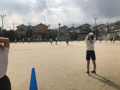 先週は雨の為できなかったので,今日が初めての朝練でした。雨も上がり日差しもあり暑い中でしたが,学年全員で取り組む朝練!
