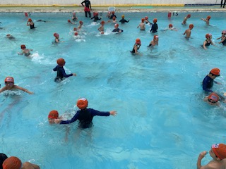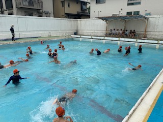 今日は体育の「水あそび」の学習の中で,石ひろいのあそびを体験しました。