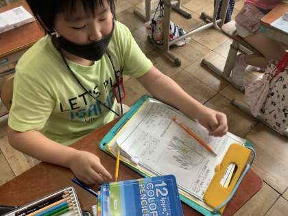 ツルレイシの観察を行いました!毎日日直が水やりや観察をしてくれているので,ぐんぐん育っています。観察カードも細かい部分まで書くことができました!