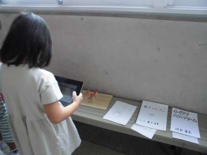 各学年の自由研究を見に行きました。「すごい!」「これ,やってみたい!」と自分のお気に入りの作品を見つけていました。