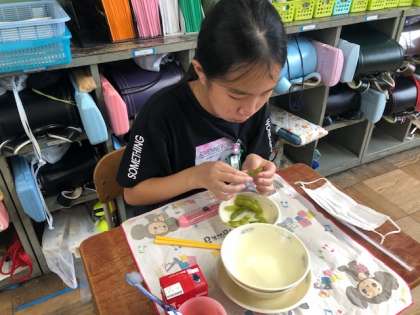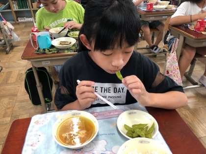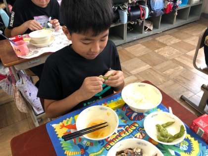 食べ方が人それぞれで面白い!一粒一粒大事そうに食べている6年生でした!