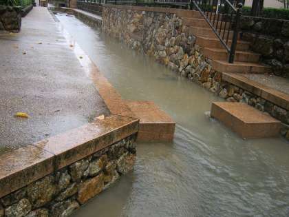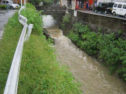 川の水は,増水して,茶色ににごり,流れが速くなっています。とても危険な状態です。近寄らないようにしましょう!