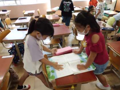 今回は「やくそく」の最後の場面の"あおむし"たちの気持ちについて考えました。