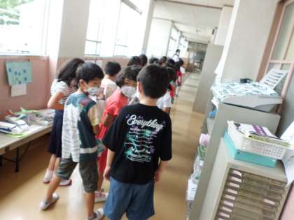 今回は理科室で火災が発生した,という想定での避難訓練でした。