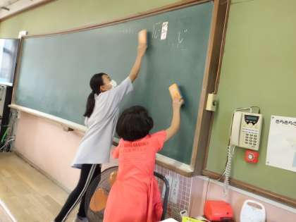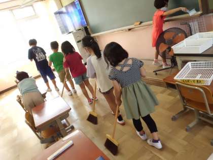 ほうきの使い方や机を動かすタイミングなど,だんだんと分かるようになってきました!