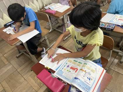 パンフレットの読み方や工夫について考えました。文字の大きさ、図や絵を使うことなど、伝えたいことに合わせてたくさん工夫されていることを知りました。これからパンフレットを読む時は、そんな工夫も見つけながら読みたいですね。
