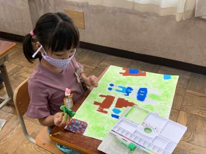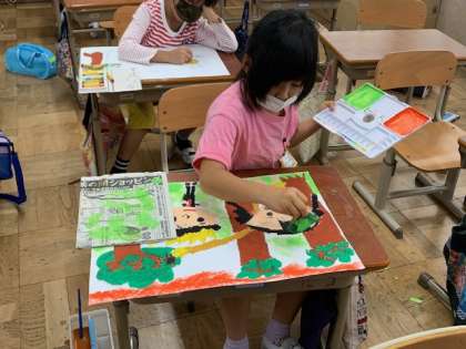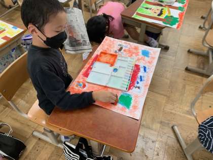 図画工作科ではお話の絵をかいています。