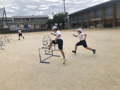 50mのタイムに近づくように,3歩のリズムや姿勢に気をつけながら頑張っています。今日は特別ゲスト!アリオーラ先生も一緒に学習しました♪