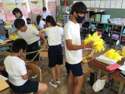 本番のチアに使うポンポンをつくりました!