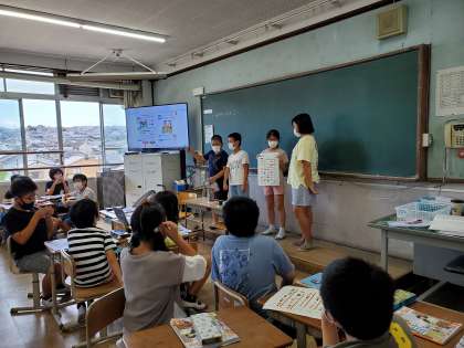 オリジナル時間割をグループで作り,グループごとに発表しました。「体育が好きだからP.Eをいっぱい入れたいな〜」「時間割の中に中国語を入れてみようかな」など,それぞれのグループごとに工夫した時間割になっていました。
