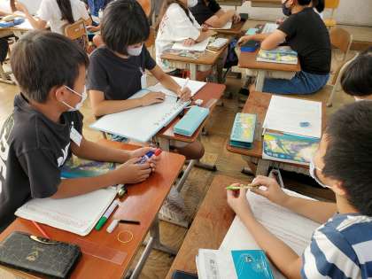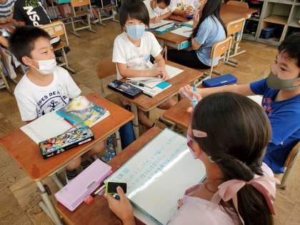 今,国語の時間では「よりよい学校生活にするために」という単元の学習をしています。藤ノ森小学校の課題を皆で考え,課題を解決するための話し合いをしていきます。この日はグループで藤ノ森小学校の課題を考えていました。