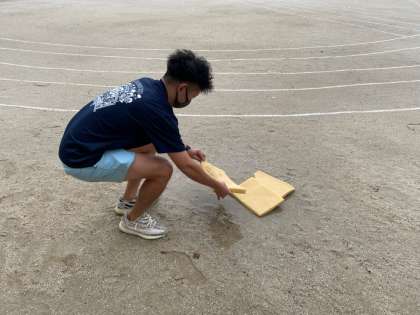 少し水たまりがありましたが,かつて部活動で鍛えられた力をいかんなく発揮中!!