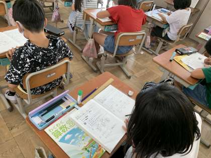 二年生の学習であった「図を使って考えよう」や「かけ算」,さらに三年生で習った割り算を使って解く問題です。今までの積み重ねが重要になってきます。図を書くコツをつかんできて解けると「わかる!!」!!,それが喜びにつながる子が増えているように思います。