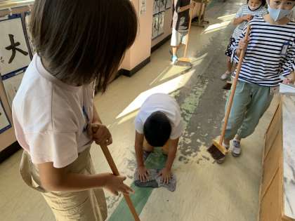 ごみをはく方向や,ぞうきんのごみの集める場所なども子どもたちで話し合ってきめて効率よく掃除する姿が見られました。今日も教室はきれいです。