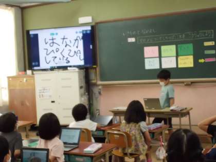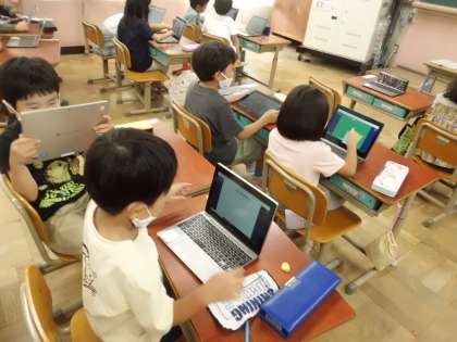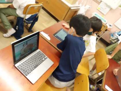 うさぎのマロンについて調べたことをロイロノートにまとめています。