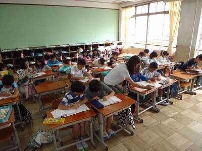 6年生では学習会の最後に「漢字しりとり」をしました。