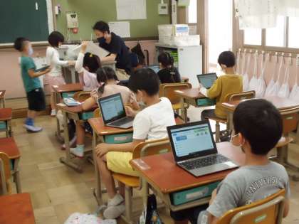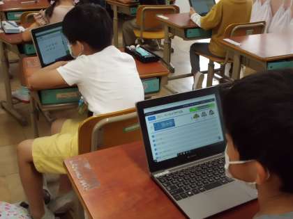 雨の日や,運動場に行けない日は,GIGA端末でドリルをしています!
