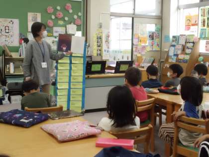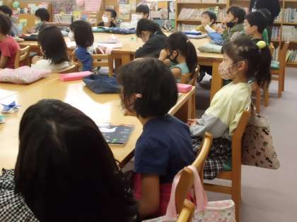 図書室で,司書の先生から読み聞かせをしていただきました!