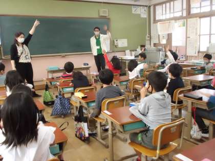 今回はアリオーラ先生と英語で,あいさつをしました!