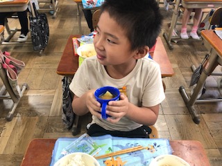 自分たちで育てたサツマイモを味噌汁にしてもらいました!
