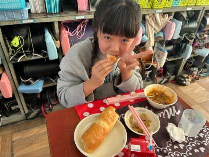 「千円札(おさつ)が入っているんですか?」とボケを入れながら…貴重なパンを味わって食べていました♪
