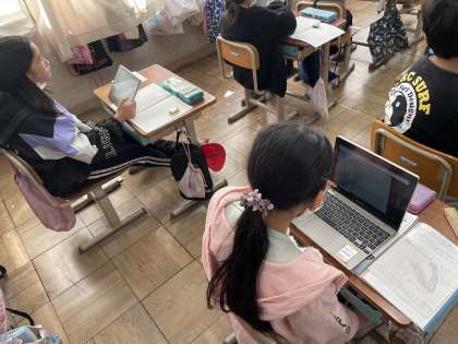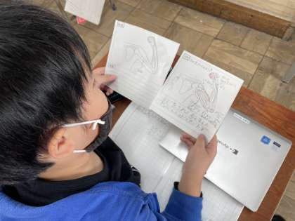 腕の骨はどのような形で、どのように動くのか予想しました!骨や筋肉を絵や説明で表し、パソコンを使って交流しました!みんなの予想を聞きながら「そうかもしれない!」「同じ予想だ!」と自分の予想と比べながら交流することができました!