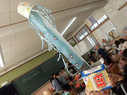 ビニール袋や箱,ストローを使って,色々な作品を作りました!