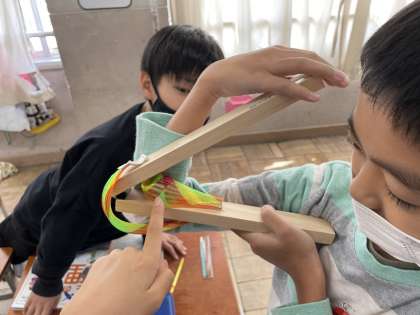 筋肉の様子がわかりやすい模型も使いました。曲げた時、伸ばしたときの筋肉はゆるむのか縮むのか、班で話し合いながら調べる姿もみられました!