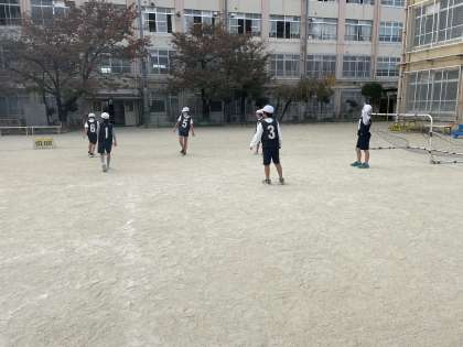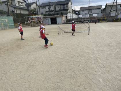 試合の前に、自分たちのチームではどの練習をすれば良いのか話し合い、練習しています。シュート練習やパス練習をチームの中で攻めと守りに分かれて取り組む姿もみられました!