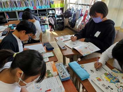 来週「ゆで野菜」をするために,今日は皆で調理の仕方や,野菜のゆで方などを調べました。美味しいゆで野菜ができるように頑張ります!