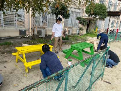 カラフルなカラーに仕上げてくださいました。校舎の出入口がとても華やかになり様な予感…。嬉しい限りです!!