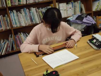 そろばんを使って計算!!早くなってきました!指づかいもお手の物!!