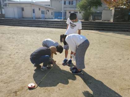 今日は自分の歩幅を平均を使って求めました。運動場に出て,10歩歩いた距離を3回出して,平均を求めました。自分の歩幅を知って「おぉ・・」と,感動している姿も見られました。