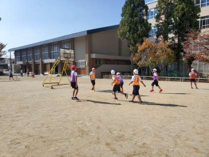 体育は「バスケットボール」に入りました。初めての試合でしたが,とても楽しんで試合する様子が見られました。