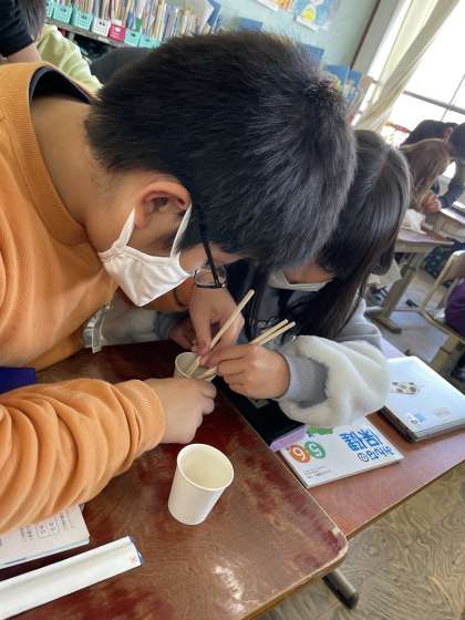 そこで,時間制限のある「豆つかみゲーム」をしました!