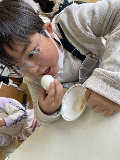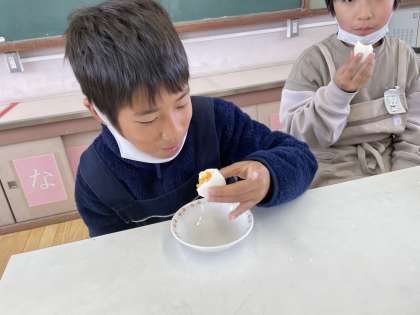 自分でゆでて剥いた卵は格別!!