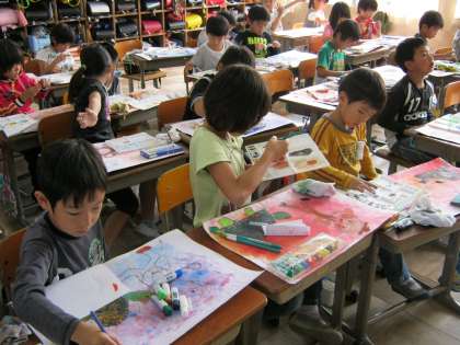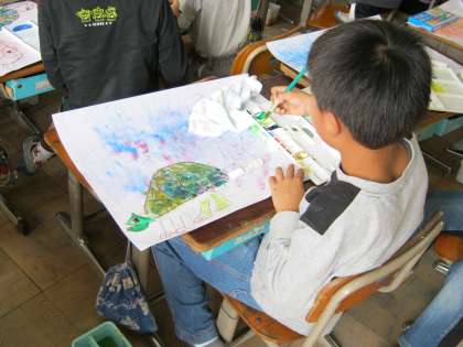 2年生は今、図工で「お話の絵」に取り組んでいます。