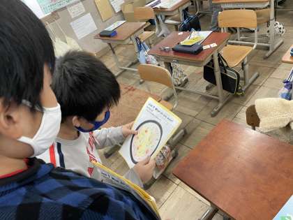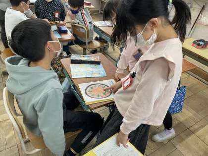 オリジナルのピザを作って、紹介し合いました!どんな食材を使ったのか、英語で伝え合うことができました!