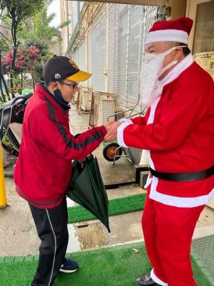 給食時間に,藤ノ森サンタさんとトナカイさんが…!いくつになってもサンタに合うとテンションが上がりますね〜♪