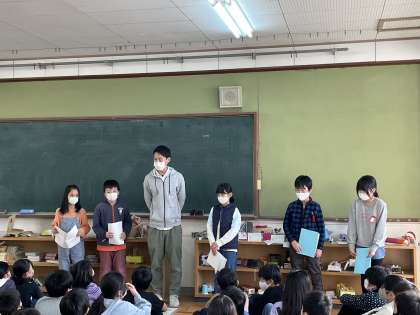 今まで学習してきた「やさしいまちづくり」について自分が思ったことを作文に表しました。今回は,各クラスの代表がみんなの前で発表しました。「今まで車いすの方や視覚障害の方について考えたことがなかったけど,今回の学習で考え,自分にできることがわかった」など,「やさしいまちづくり」のために自分ができることを発表することができました。