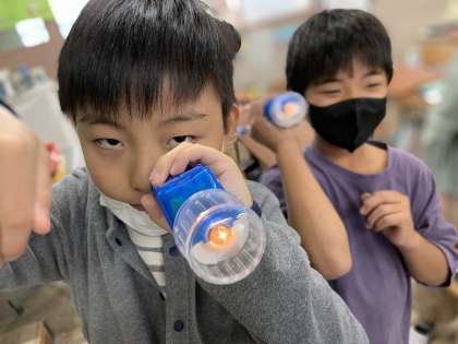 電気の学習を終えて,最後に壊れた懐中電灯をみんなで直しました。