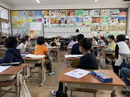 自分の物語と比べたり,友だちの工夫を見つけながら想像して世界観を楽しんでいました。