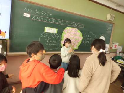 たてわりのグループで,人権ウォークラリーがありました。