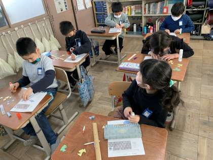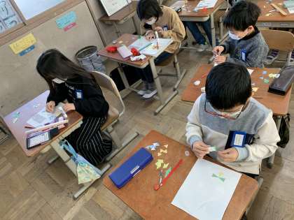 今日は正三角形や二等辺三角形を使って形を作っていきました。