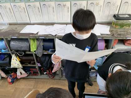 総合の学習で「高齢者」について学習しました。その学習したことを今日はたてわりのほかの学年に発表しました。自分なりの言葉で身振り手振りを使いながら発表することができていました。
