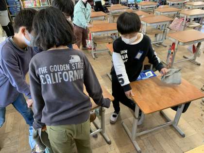 毎日使っている大切な教室,廊下,階段など丁寧に掃除する姿が見られます。