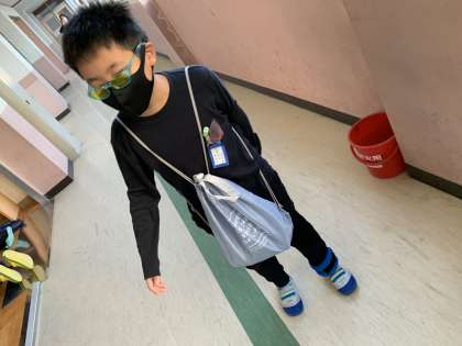 黄色く見える眼鏡をかけて,足や手におもりをつけ,体にリュックをせおって歩きました。「ひじやひざが曲がりにくかったです。」「周りが見えなくてぶつかりそうになった」という声が上がりました。高齢者の体験をして,手助けしたいという思いが強くなったようです。また,高齢者の寸劇を見て,直したらいいところ,自分だったらどうするかというのを一生懸命考えることができていました。生活に生かしていってほしいですね。