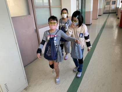 黄色く見える眼鏡をかけて,足や手におもりをつけ,体にリュックをせおって歩きました。「ひじやひざが曲がりにくかったです。」「周りが見えなくてぶつかりそうになった」という声が上がりました。高齢者の体験をして,手助けしたいという思いが強くなったようです。また,高齢者の寸劇を見て,直したらいいところ,自分だったらどうするかというのを一生懸命考えることができていました。生活に生かしていってほしいですね。
