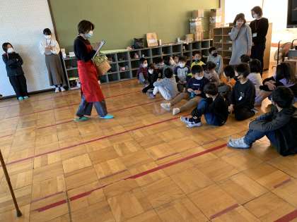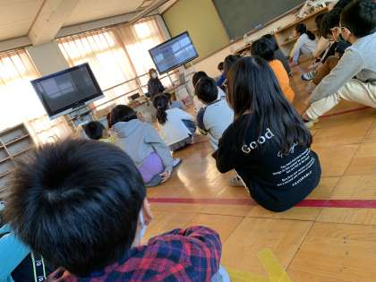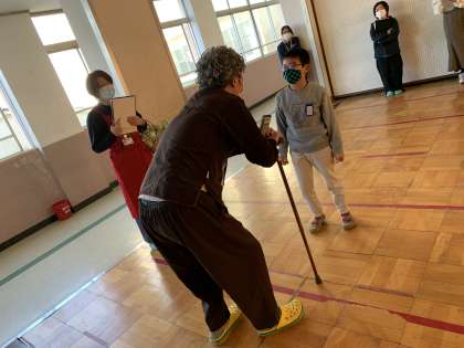 黄色く見える眼鏡をかけて,足や手におもりをつけ,体にリュックをせおって歩きました。「ひじやひざが曲がりにくかったです。」「周りが見えなくてぶつかりそうになった」という声が上がりました。高齢者の体験をして,手助けしたいという思いが強くなったようです。また,高齢者の寸劇を見て,直したらいいところ,自分だったらどうするかというのを一生懸命考えることができていました。生活に生かしていってほしいですね。
