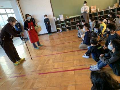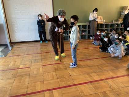 黄色く見える眼鏡をかけて,足や手におもりをつけ,体にリュックをせおって歩きました。「ひじやひざが曲がりにくかったです。」「周りが見えなくてぶつかりそうになった」という声が上がりました。高齢者の体験をして,手助けしたいという思いが強くなったようです。また,高齢者の寸劇を見て,直したらいいところ,自分だったらどうするかというのを一生懸命考えることができていました。生活に生かしていってほしいですね。